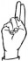 На ћирилици написано ВЛАДАН ЈЕВЂЕНОВИЋ састоји се из 16 слова [?]. Исписано ћириличном једноручном азбуком за глувонеме: